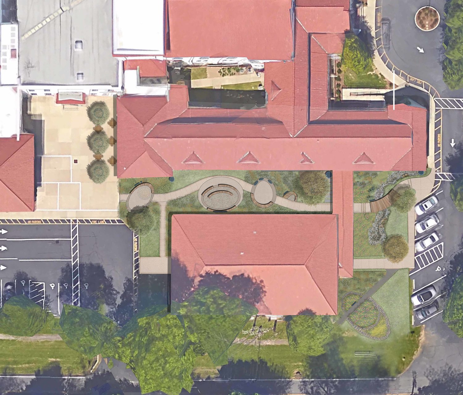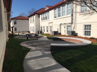 BDC’s design for Anchorage Independent Public School’s outdoor classroom in Louisville, Kentucky provides an innovative place for students to explore their curiosities. The outdoor classroom’s design was inspired by cues from nature, which have been incorporated into the space in details such as stamped concrete patterns imprinted with local flora and fauna. Three themed breakout pods are adaptable to students of any age and learning ability, and include spaces for data collection and interaction with plants and wildlife. The design also facilitates the school’s mission to teach sustainability by incorporating interactive rain barrels, a food waste composting area, a weather monitoring station, a sun dial, and native grass and perennial plantings.