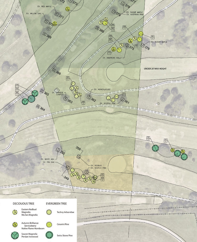 Louisville Regional Airport Authority contracted with Hanson Professional Services, Inc. to trim or remove trees that penetrate, or will penetrate, approaching Federal Aviation air surfaces at Bowman Field. BDC provided landscape design consultation for affected property owners, guiding them through a tree replacement and landscape enhancement process. BDC managed this project and provided inspections of the tree and landscape installations. The program required coordination of tree replacements for private residential properties, Louisville Metro Parks, Big Springs Country Club, and the airport property. Key components of the process included planning for ecological and function tree diversity while preserving the long-term viability and safety of the existing runway approaches.