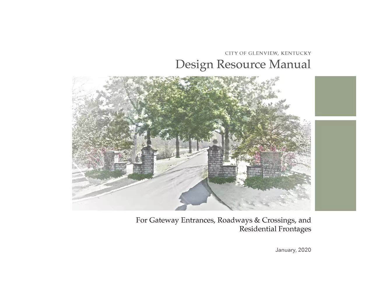 The City of Glenview, located along the southern bank of the Ohio River in northeastern Jefferson County, Kentucky, commissioned BDC to prepare design guidelines that preserve and reinforce its neighborhood’s historic character. The historic district of Glenview, nearly seven-hundred acres, is listed on the National Register of Historic Places. The roughly three-hundred-page document provides detailed design recommendations for improvements along roadways, at historic and signature subdivision entrances, and along residential frontages. The document includes an extensive photographic planting guide for public rights of way and residential properties, listing over two hundred trees, shrubs, perennials, grasses, forbs, and sedges.