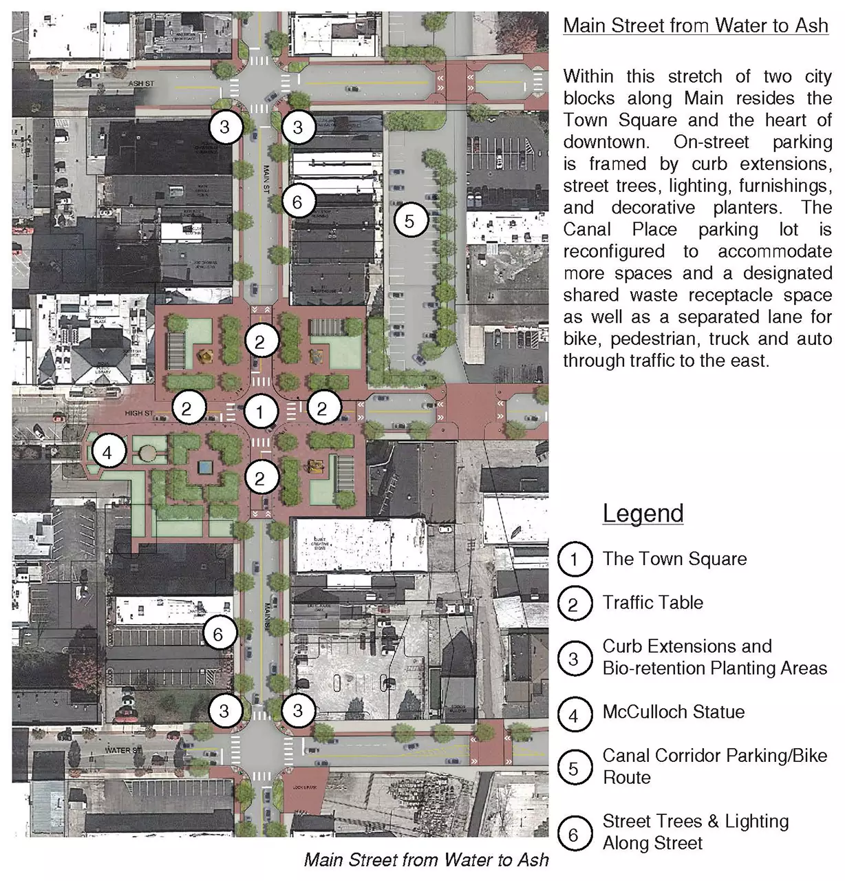 BDC lead a multi-disciplinary design team in creating a master plan for the Main Street corridor in downtown Piqua, Ohio with an emphasis on traffic calming. The proposed comprehensive improvements include signature gateways into the downtown district, streetscape improvements along the Main Street corridor, and a new town square. The overarching goals were to create a beautiful downtown setting that invites visitors and commerce while stimulating private sector investment. Piqua’s downtown district has attracted a considerable amount of investment over the last several years, and progress continues. This effort is aimed at promoting further development in this town of approximately 20,000 people.